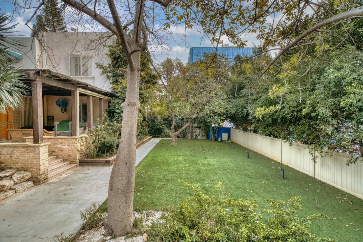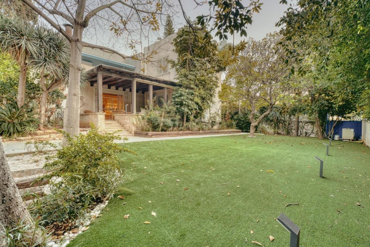 שטחי גן מרהיבים סביב הבית עם פינות ישיבה, טלוויזיה, פינת אוכל ועוד.