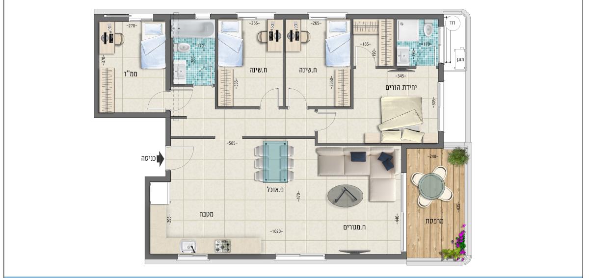 דירת 5 חדרים, 120 מ"ר, תכנון מעולה.