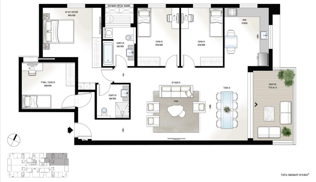 בפרויקט חדש, דירת 5 חדרים עם מרפסת שמש גדולה.