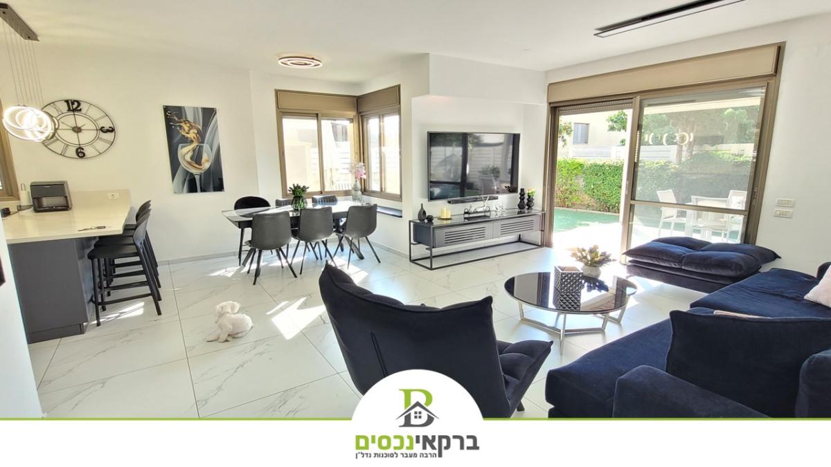 בקומת הכניסה - סלון, מטבח מהמם, פ.אוכל, שירותי אורחים וחדר ממ"ד- גינה ענקית ומדהימה!