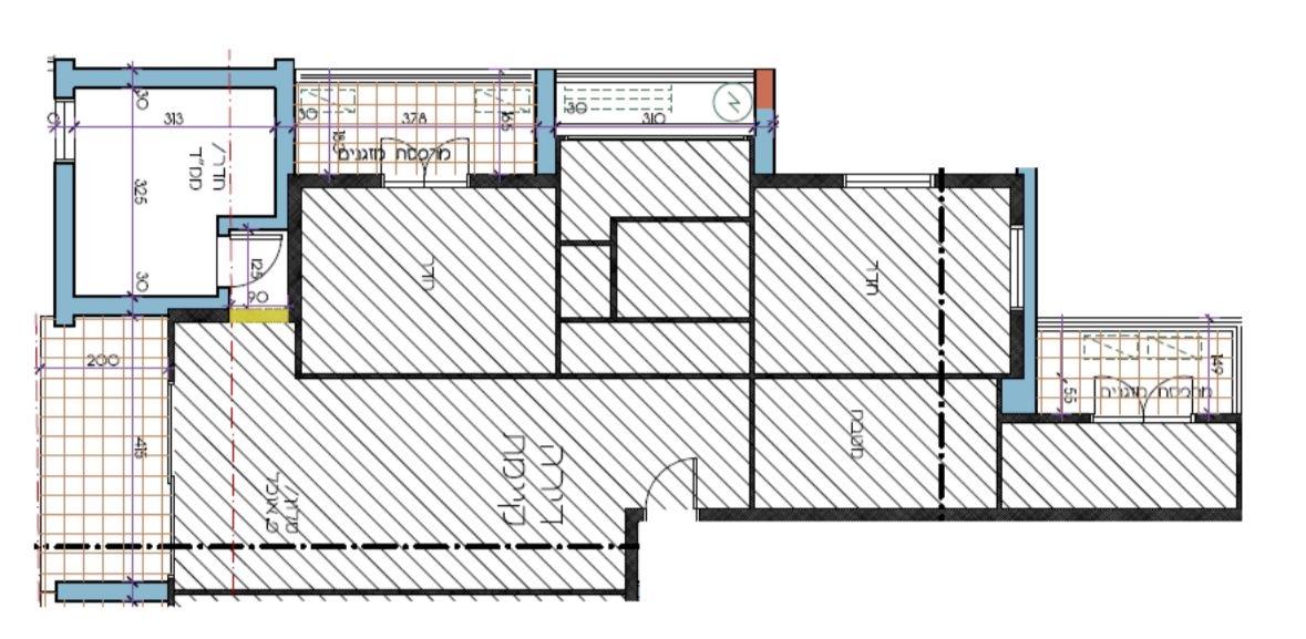 גודל דירה: 102 בנוי + 3 מרפסות בסה"כ 20 מטר.