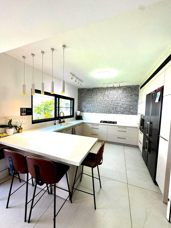 בקומת הסלון , והמטבח של סמל עם שיש יוקרתי דקטון מונע שריטות ,ואי רחב ל4 סועדים,