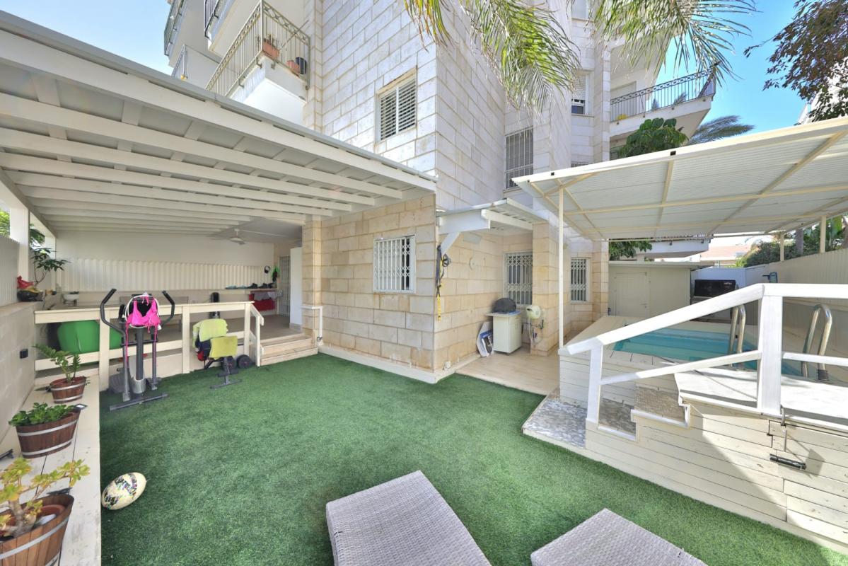 בשכונת סביוני ים המבוקשת בניין בוטיק מטופח בן 18 שנה,דירת גן במפלס אחד,4 חד 100 מ"ר בנוי+100 מ"ר גינה מרוצפת עם בריכת אינטקס ענקית,משופצת ברמה גבוהה מאד,יחידת הורים ענקית,ממ"ד,מחסן וחניה בטאבו.