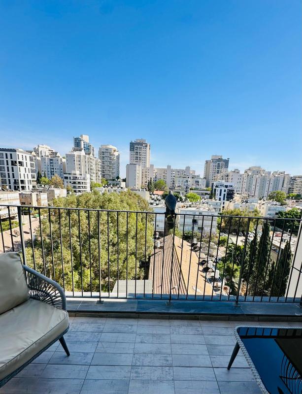 דירה מודרנית בבניין בוטיק חדש, עם שפע אור טבעי ומרפסת שמש מרווחת במיוחד עם נוף אורבני.