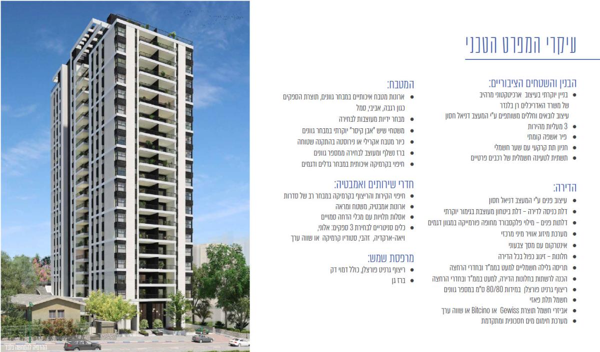 הבניה החלה !! ללא עמלת תיווך !! מגדל הפודים !! בלב שכ' נחלת גנים המתפתחת !! פרוייקט יוקרתי בסטנדרט שלא נראה כמותו !! מועדון דיירים, חניה תת קרקעית, מחסנים, חללי מגורים מרווחים שיעוצבו ברמת גימור גבהה !! מפרט טכני עשיר לכל הדירות !! מרפסות שמש גדולות !! ליווי בנקאי מלא !! תנאי תשלום נוחים