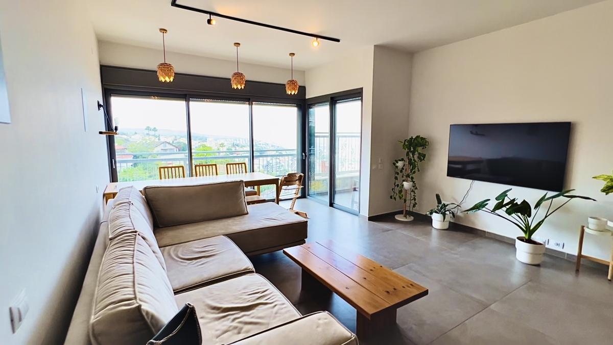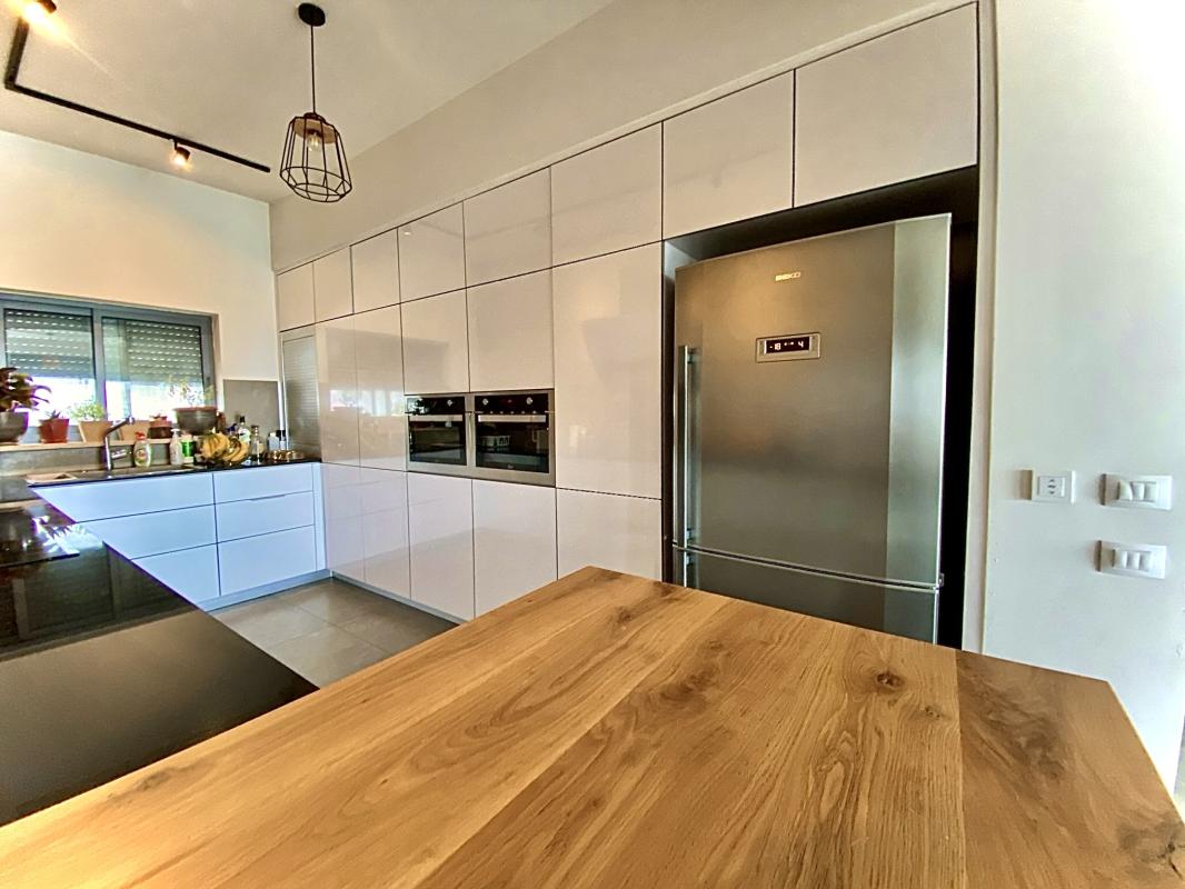 דירה מעוצבת ברמה מאוד גבוהה, שיש אבן ואינדוקציה, רמקולים בקירות ובתקרה, הכנה לקולנוע ביתי.