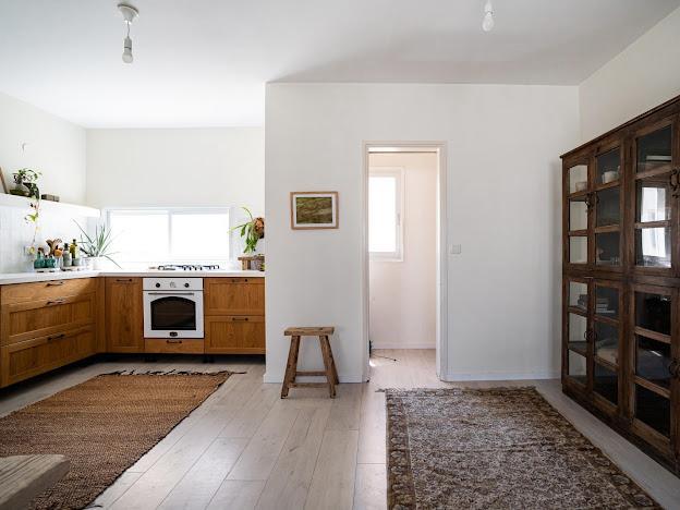 קומה ראשונה: סלון גדול ומואר, פינת אוכל, מטבח חדש מעץ מלא בעבודת נגר, מזווה ומסתור כביסה.