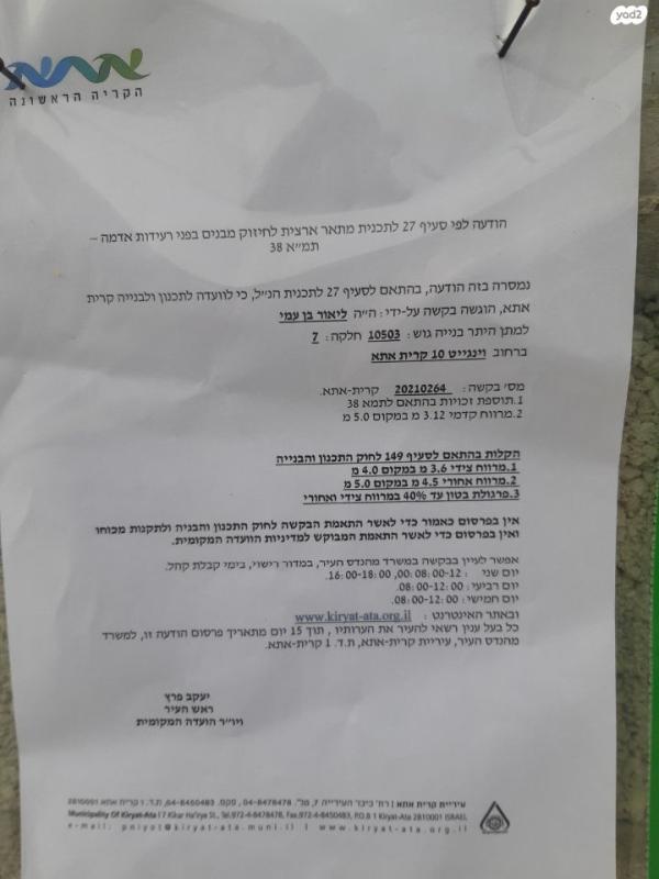 תיאור הנכס: קריות,קרית אתא,גבעה א,וינגייט 10