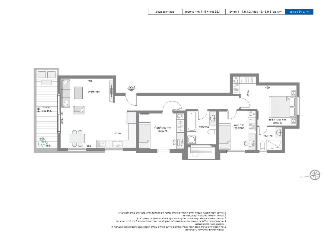 92מ"ר בנוי+ 11.5 מ"ר מרפסת+ חניה.