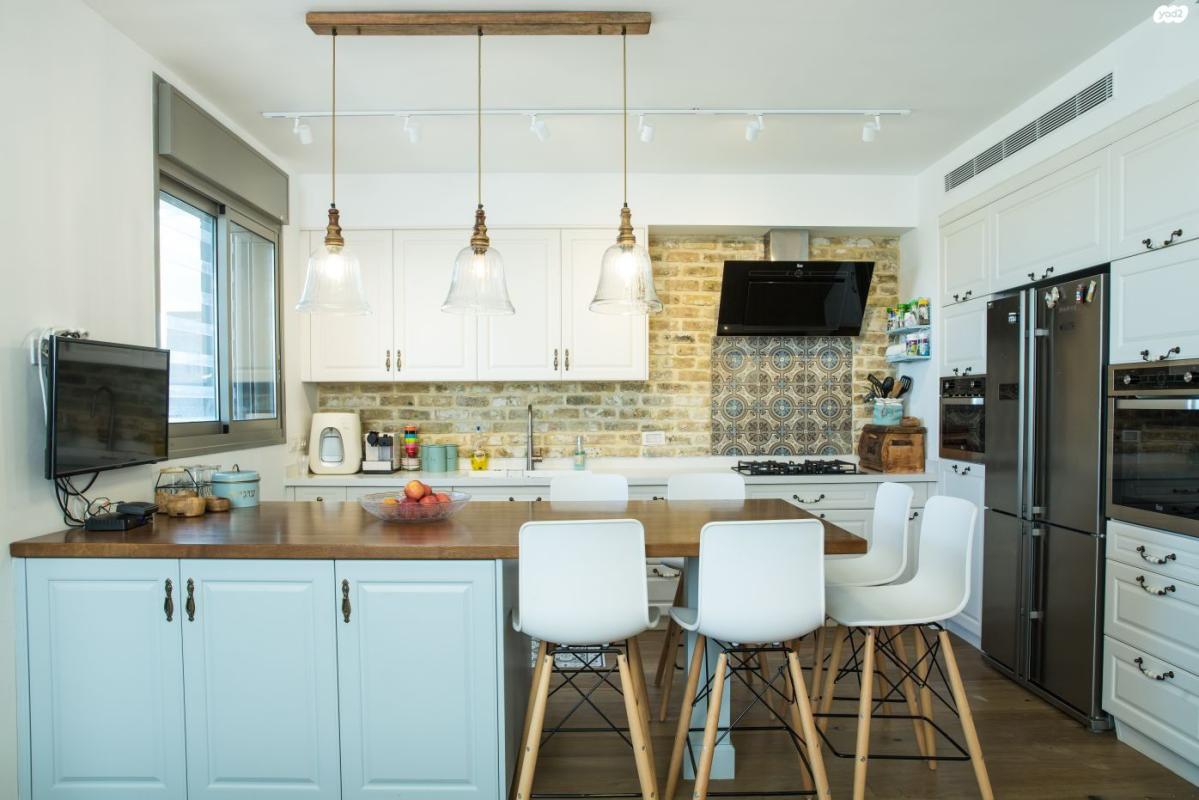 * אי מטבח גדול 120X260 ס"מ עם 6 מקומות ישיבה בוצ'ר עץ טבעי 5 ס"מ