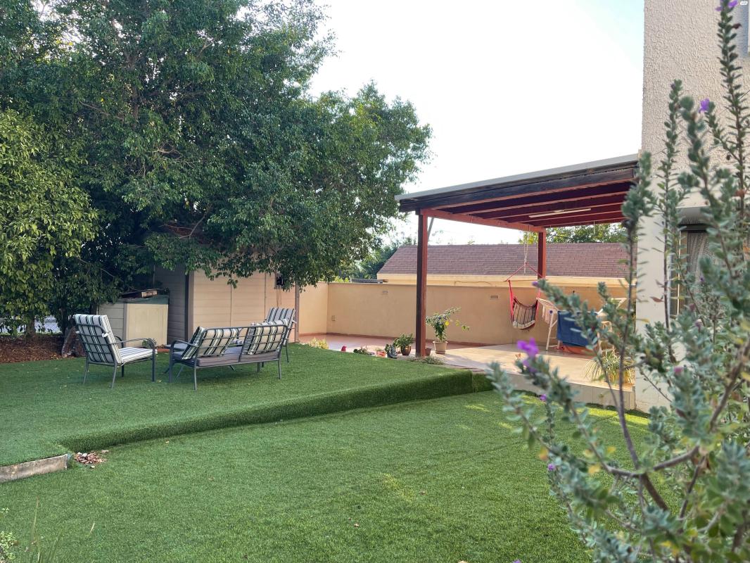 דירת 5 חדרים משופצת ויפה עם גינה ענקית (בהסכמה) גינה כ-120מ"ר הטובלת בירוק עם עצי פרי, חניה פרטית צמודה ומחסן!