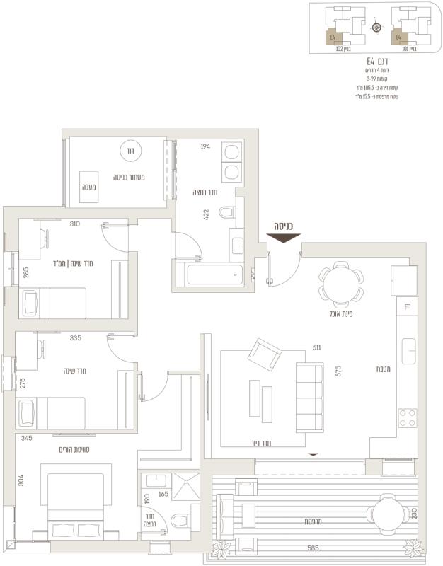 105.5 מ"ר + מרפסת של 15 מ"ר