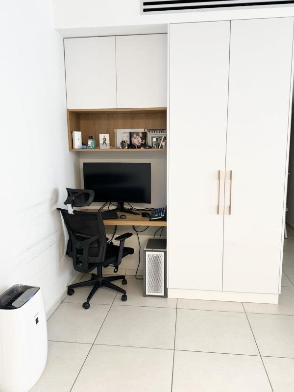 פינת עבודה מעוצבת+ ארון אחסון מרווח.