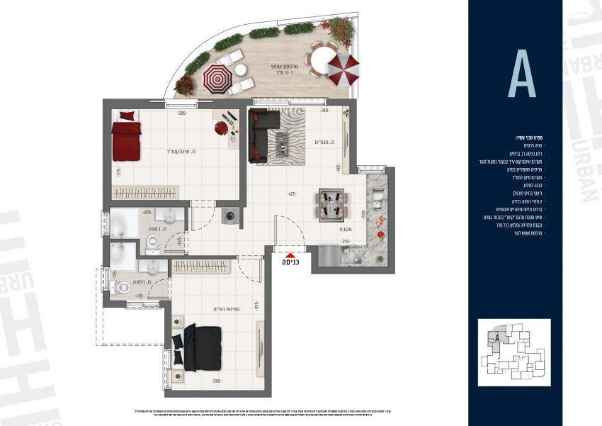 - חדר הורים, הכולל מקלחת ושרותים נפרדים
