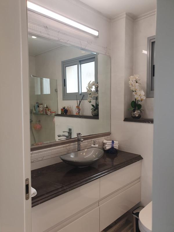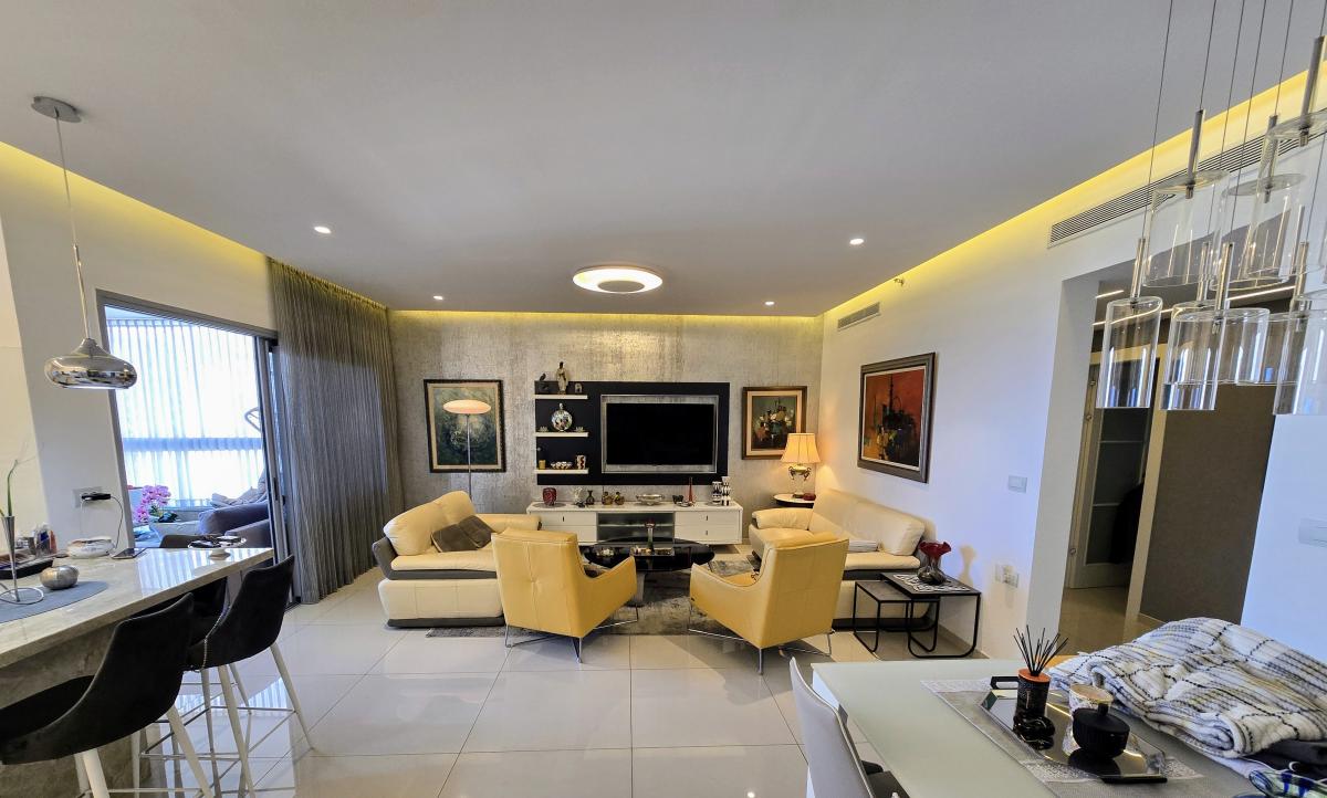 דירה משופצת איכותית, ארונות, חדר ארונות, נוף לים, מרפסת 25 מ"ר סגורה עם חלונות, שתי חניות מקורות, מחסן, חדר כושר מפואר, בריכת שחייה, מרוהטת חלקית