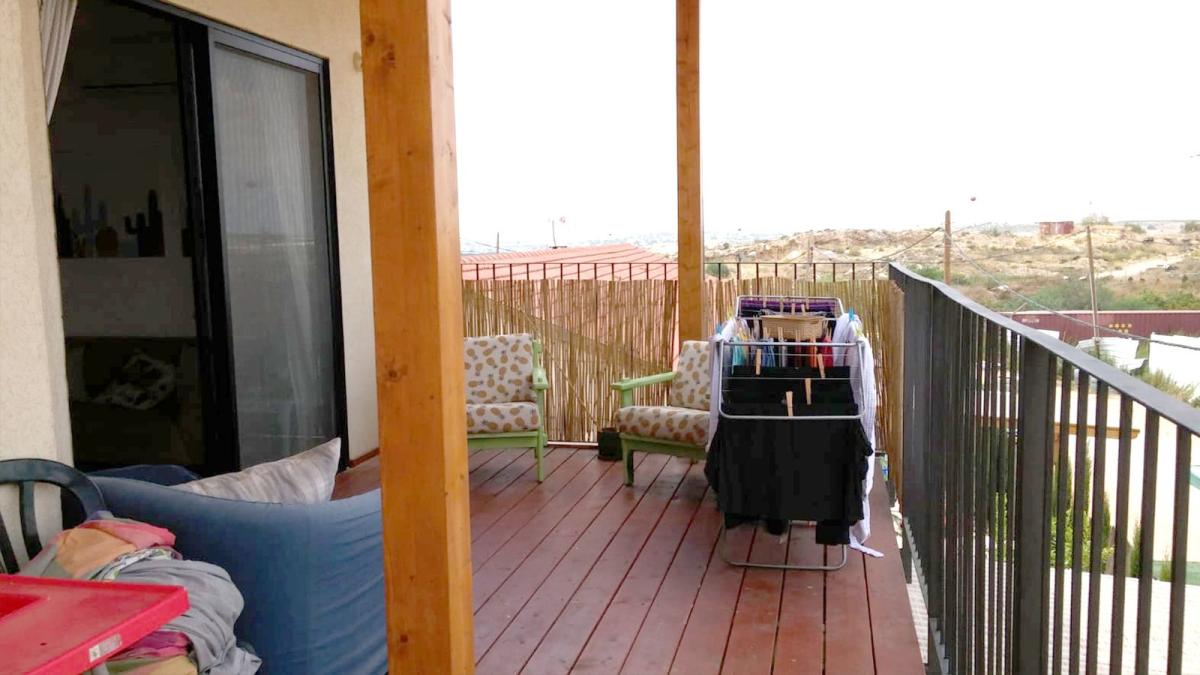 לבית יש מרפסת רחבה פתוחה לנוף.