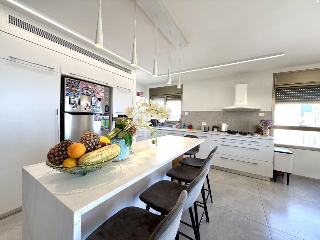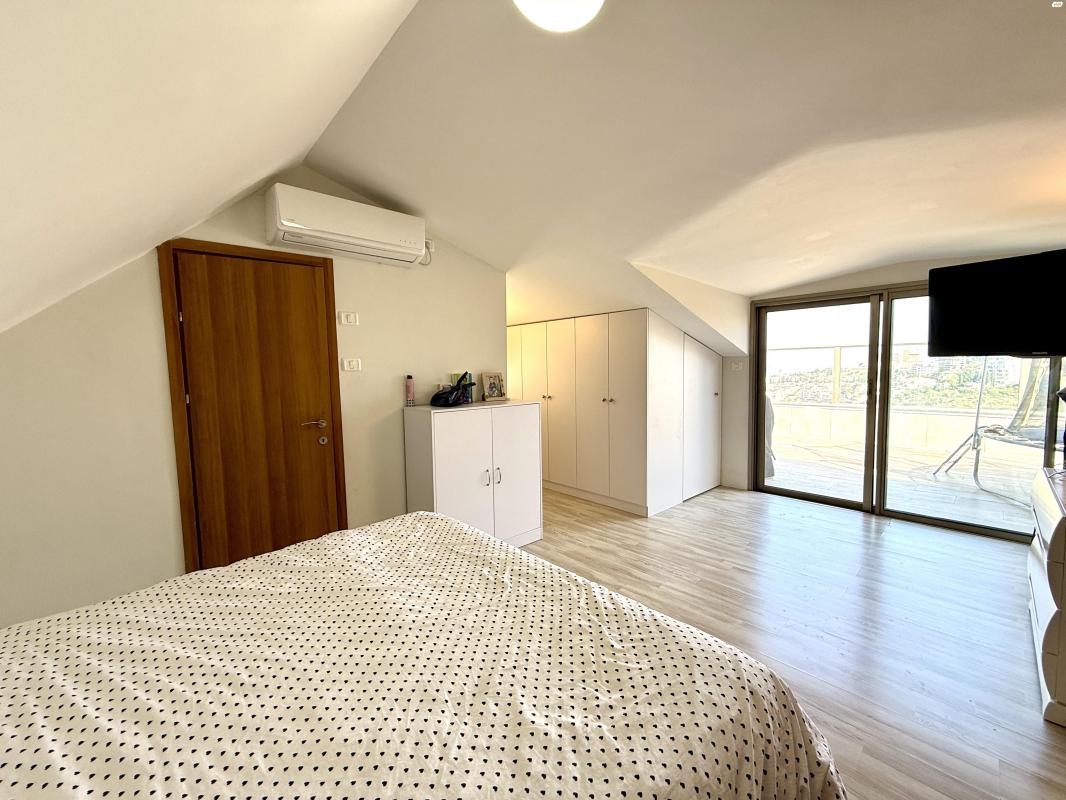 דירה 5 חד' דו-מפלסית, כ-126 מ"ר, משופצת אדריכלית, עם נוף מערבי עוצר נשימה לים. בקומת הכניסה סלון, ויציאה למרפסת שמש של 25 מ"ר, מטבח, פינת אוכל, ממד, חדר שירותים ומקלחת. בקומה עליונה, יחידת הורים עם מרפסת שמש של 28 מ"ר, וחדר שינה נוסף. גישה מלאה ונוחה, 2 חניות מקורות ומחסן בטאבו. מעלית בבניין, דוד שמש. דירה בעיצוב יוקרתי, נוחות מקסימלית ונוף מרהיב.