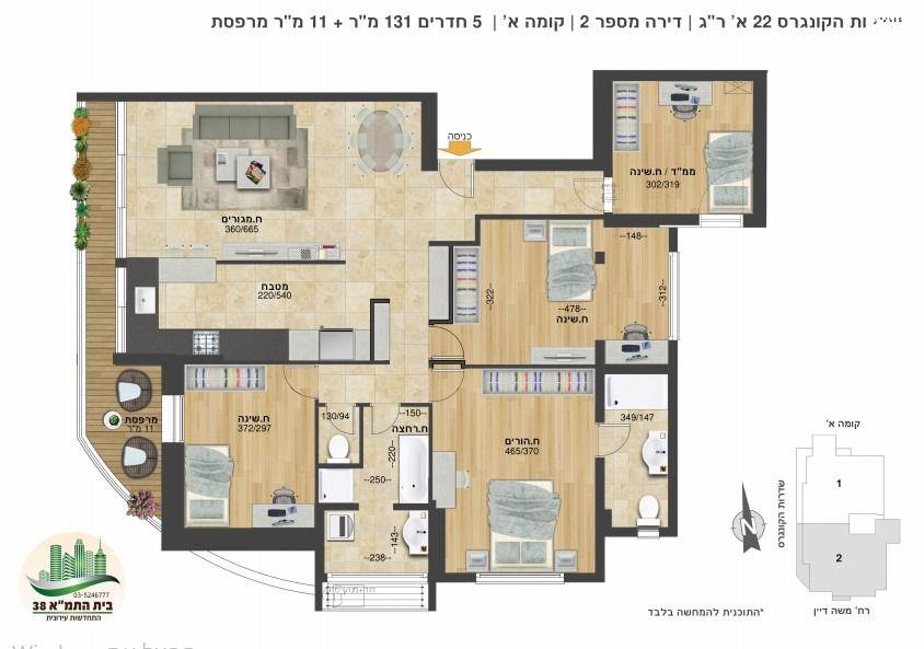 שד' הקונגרס 22 א' ר"ג, ללא תיווך, בנוי 131 מ"ר + מרפסת 11 מ"ר. פרויקט תמ"א 38 שנמצא בעיצומו.