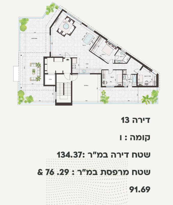 בשיווק בלעדי, דירה חדשה בבניין בוטיק ברמה מאוד גבוהה: 5 חדרים ו2 מרפסות בגדלים 30 מ''ר ו-91 מ''ר. נוספים לדירה 2 חניות ומחסן,