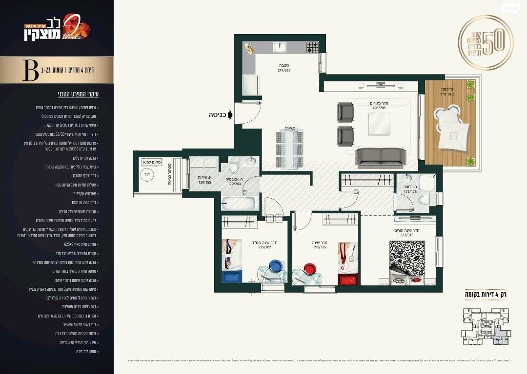 במשכנות אומנים דירת 4 חדרים חדשה מקבלן ללא תיווך עם מיזוג מרפסת וחנייה כניסה כמעט מיידית בניין מפואר במיקום מעולה