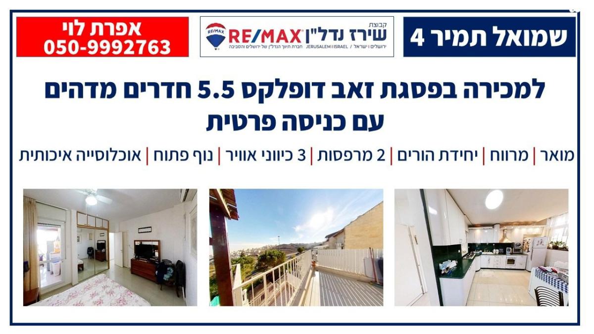 למכירה בפסגת זאב דופלקס 6 חדרים מדהים עם כניסה פרטית |