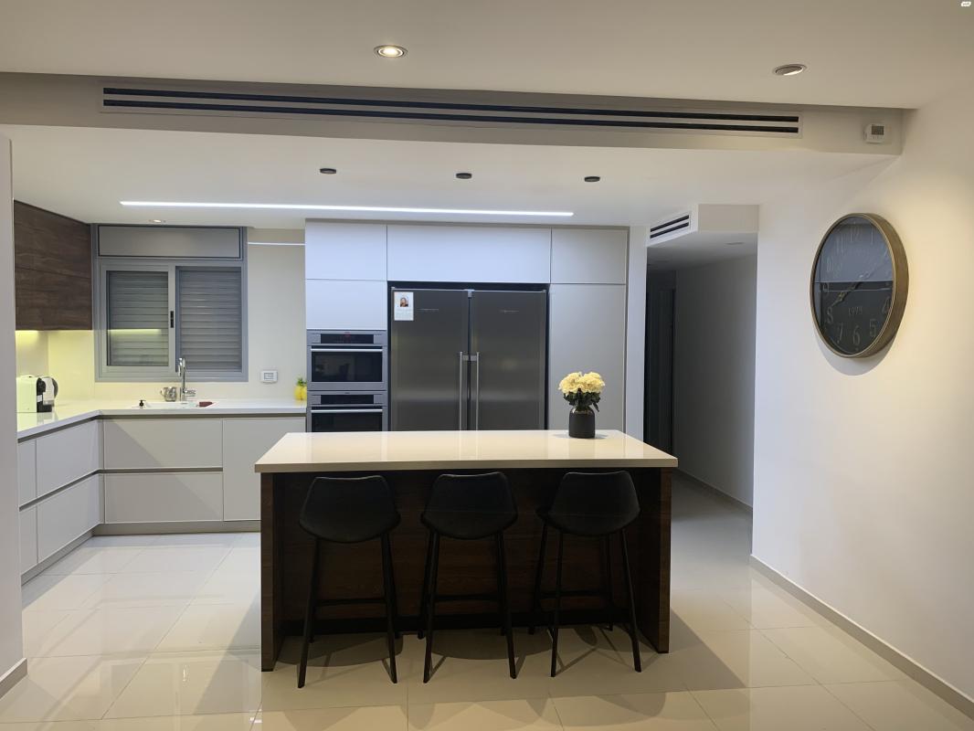 מטבח מושקע של חברת פנל ארונות וחדר ארונות של חברת הרדור הנמכת תקרה בכל הבית מיזוג, מחסן גדול בקומת מחסנים 2 חניות