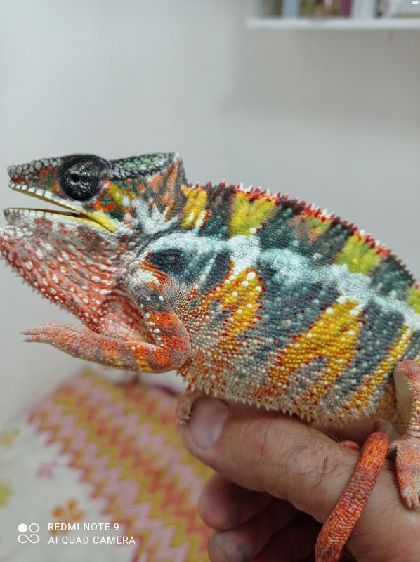 זיקית פנתר ממדגסקר, זן אמבילובה, מסוגלת להפגין כמעט כל צבעי הקשת ..מדובר בזכר בוגר בן 14 חודש. יש לו חולשת לשון מגיל צעיר, ולכן אינו יורה את הלשון למרחקים, אך הוא טופס מצוין חרקים מתוך כלי. חוץ מזה בריא לחלוטין .כרגע מעט פחות צבעוני בגלל צבעי החורף. באביב וקיץ יש בו כעט כל צבעי הקשת. ליווי מקצועי לפני ואחרי הקנייה..מגיע גם למרכז..אפשרות למשלוח לאזור חיפה