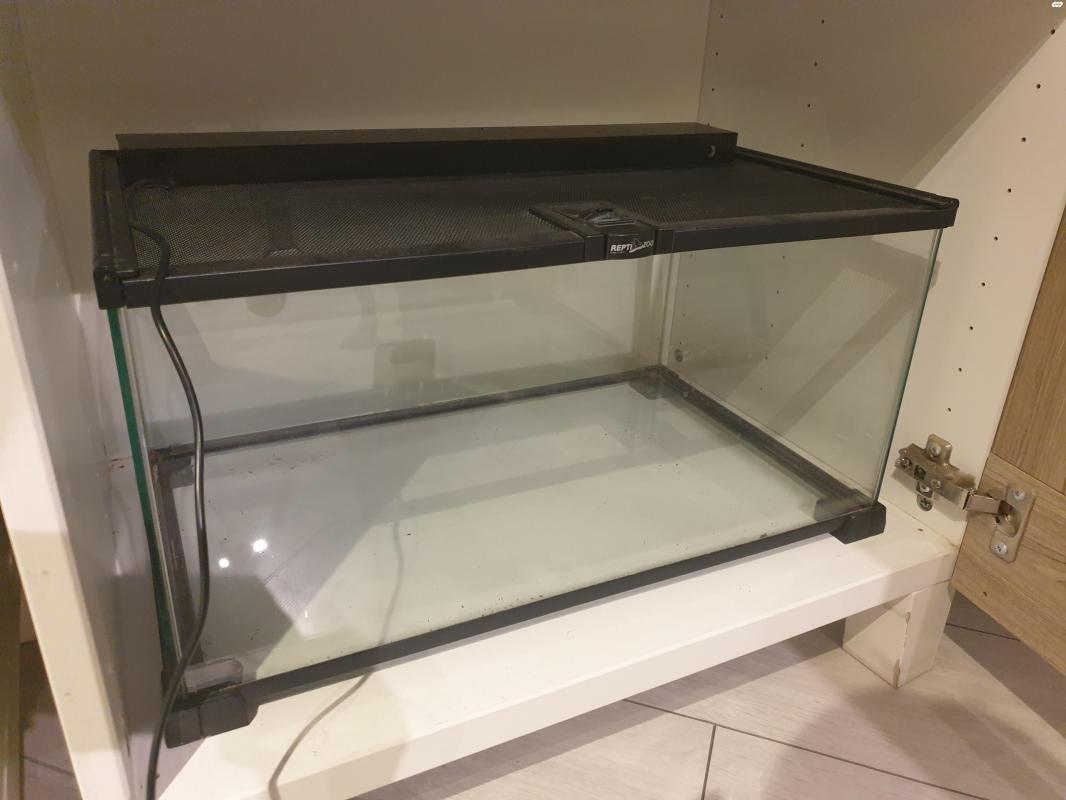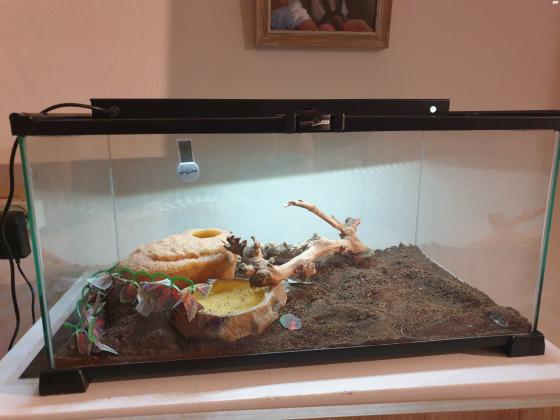 טטריום בגודל 50*25*30הטרריום בא מאובזר עם דברים בסיסיים בשביל לגדל זוחל:מחבוא (10*12*)קערת מים (10*12)פד חימום (28*28)מד טמפרטורה ולחותמנורה המתאימה לגודל הטרריום