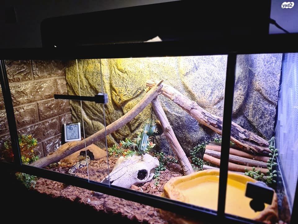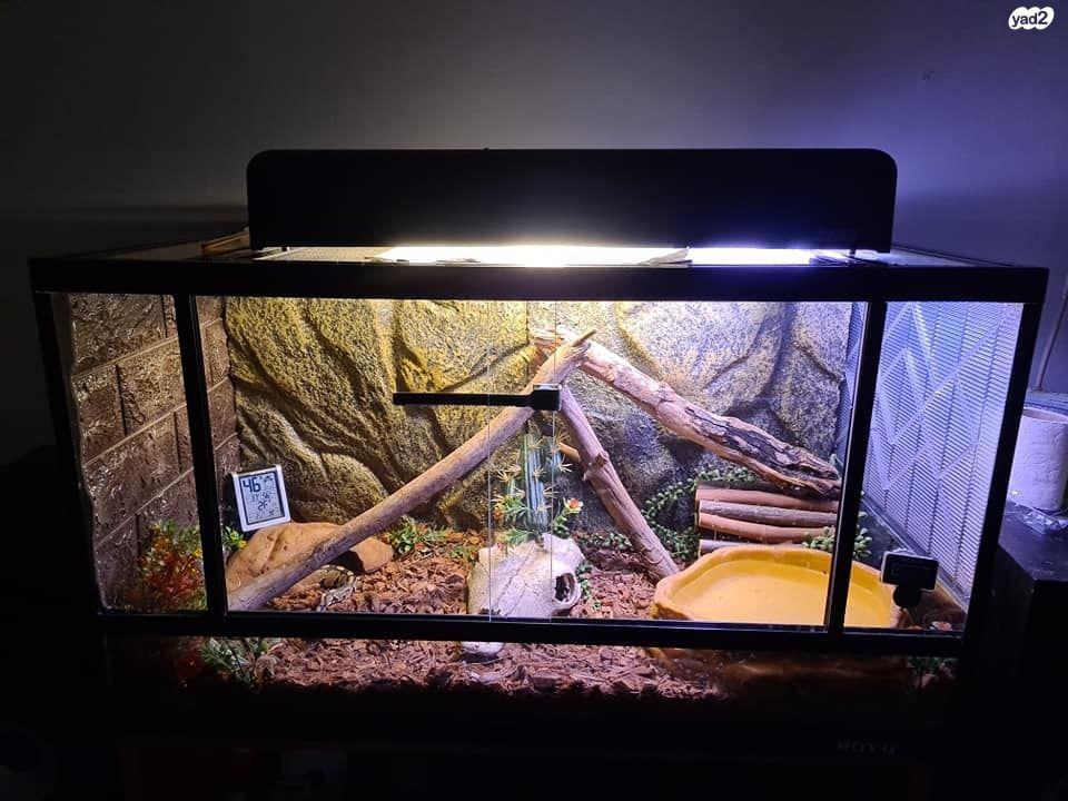 טרריום BOYU 80x45x40 ,שלוש מסתורים ,קערת מים גדולה ,רפלקטור של אקזוטרה עם שתי מנורות ,רקע תלת מימד אקזוטרה ,3 מדי טמפרטורה ולחות בתוך הטרריום ,אקדח לייזר לבדיקת טמפרטורה