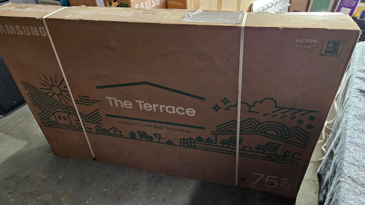 טלוויזיה חכמה חיצונית QLED של Samsung The Terrace 75 אינץ' עם שמש חלקית 4K QN75LST7TAFXZA