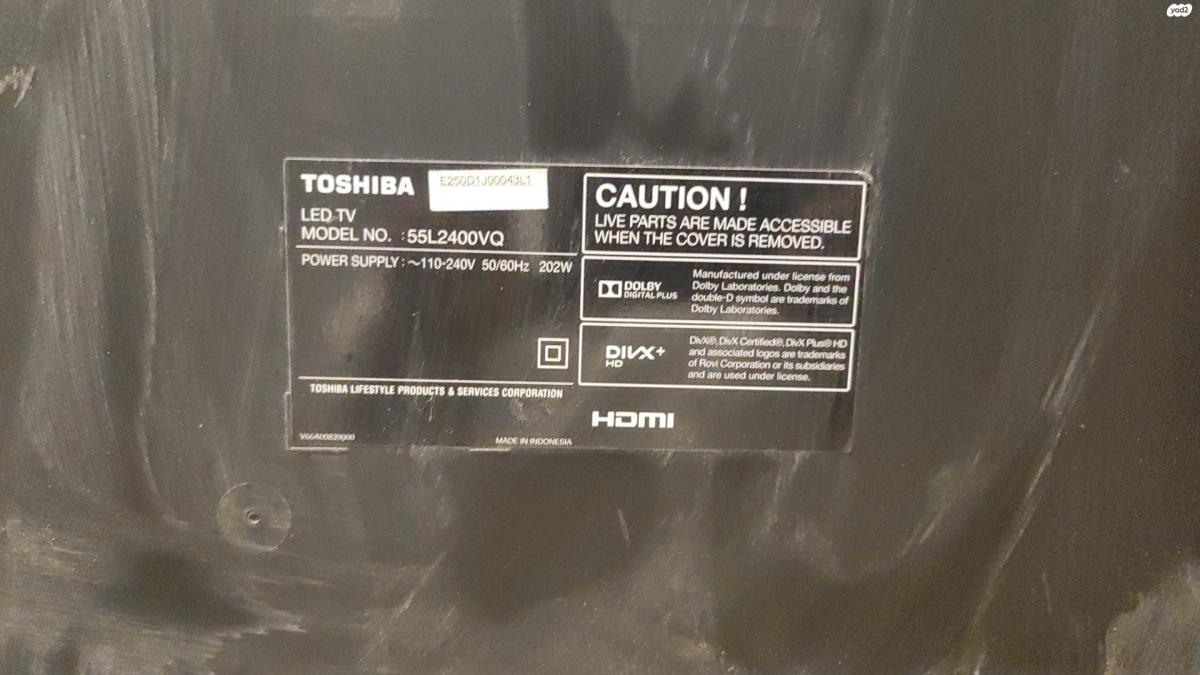 טלוויזיה טושיבה 55 אינץ' ממש חדש, נרכשה לא מזמן וקיבלה כנראה מכה קטנה ונוצרו שני קווים דקים, כמעט לא מורגשים (אחד ממש בלתי נראה). מלבד זאת עובדת מצויין. מצרפת צילום בו נראים הקווים, אחד מהם אפילו לא נראה בצילום טושיבה 55''