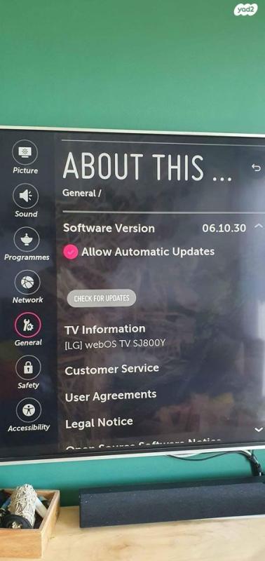 טלויזיה 4K מדהימה של LG בגודל 55'' במצב מעולה. דגם SJ800Y, מוכר עקב שדרוג. איסוף מדרום ת"א. ללא מעמד, שלט מקורי אך ללא מכסה (נאבד) טלויזיה LG LED 4K 55