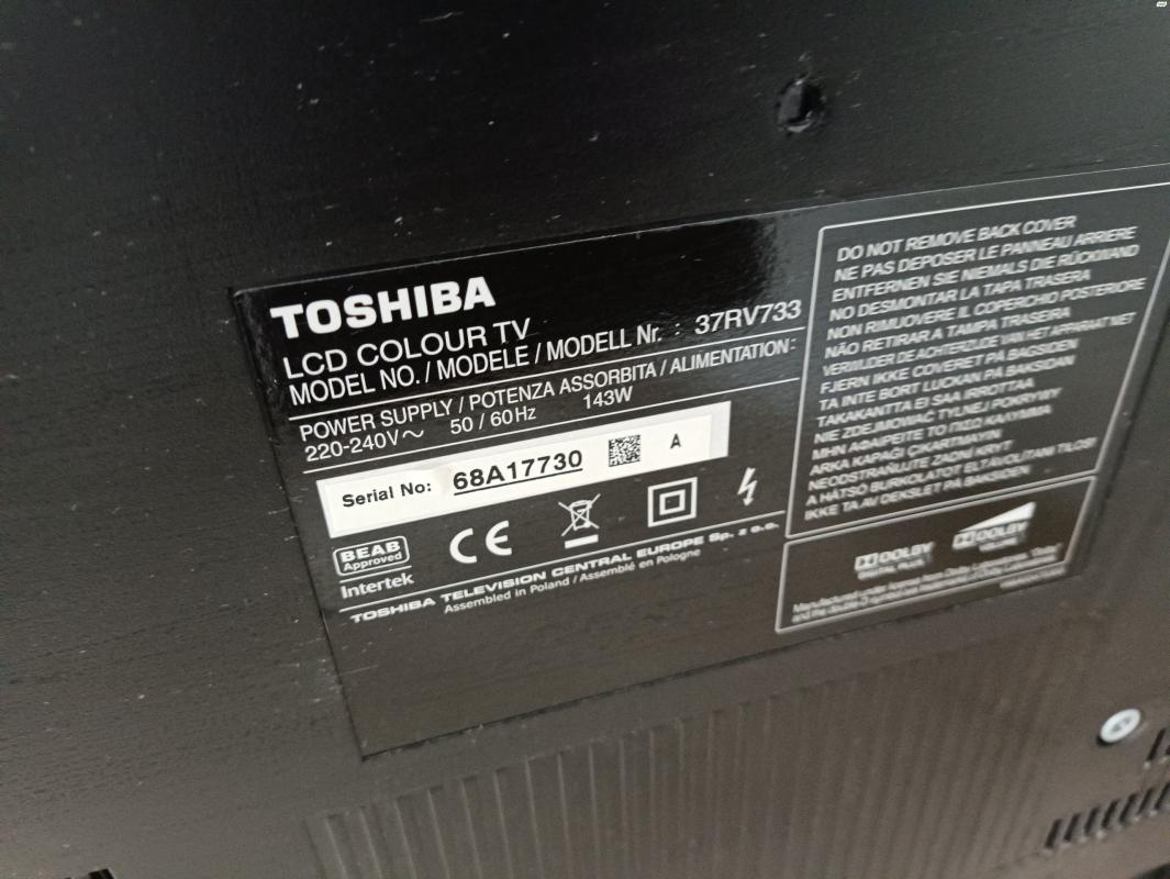 למכירה טושיבה רגזה 37 אינץ, דגם 37RV733,0 , פועלת מצויין ללא שום תקלה או נקודה על המסך, 180 שח טלויזיה טושיבה רגזה