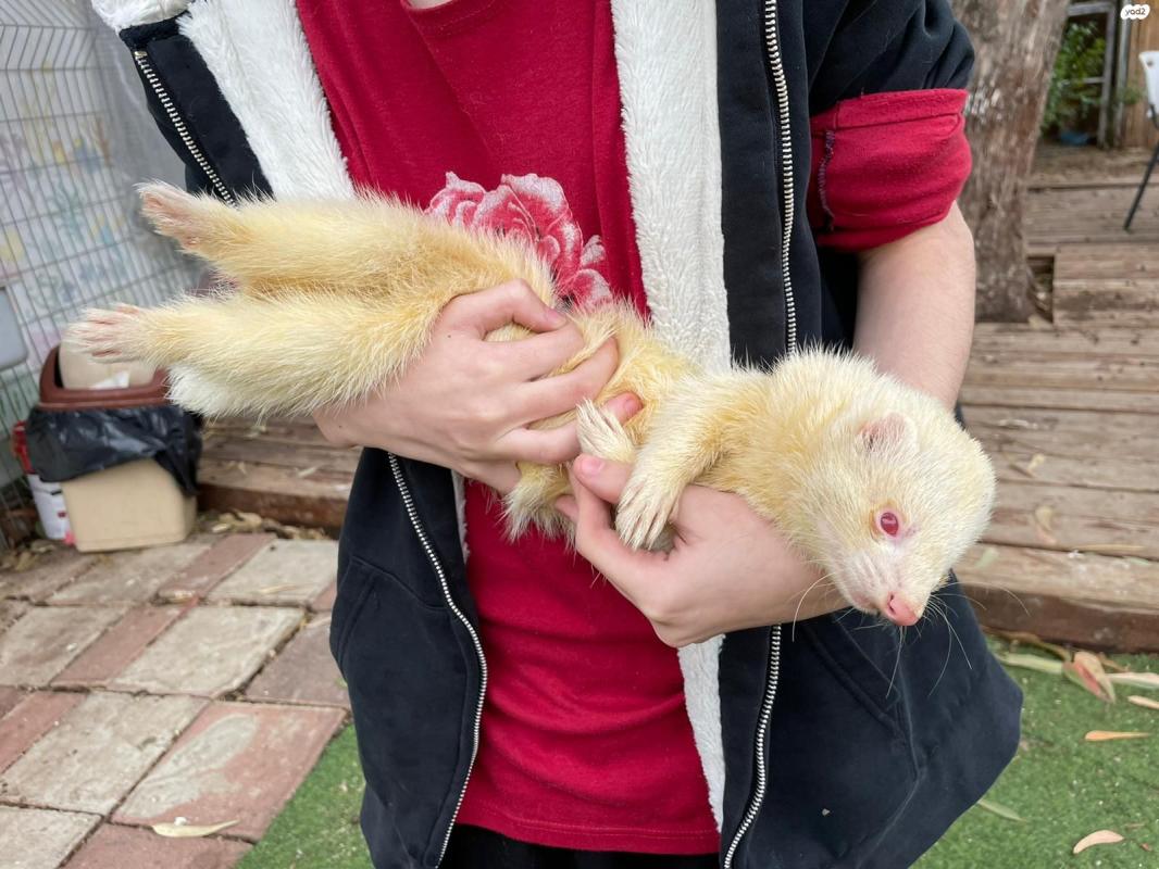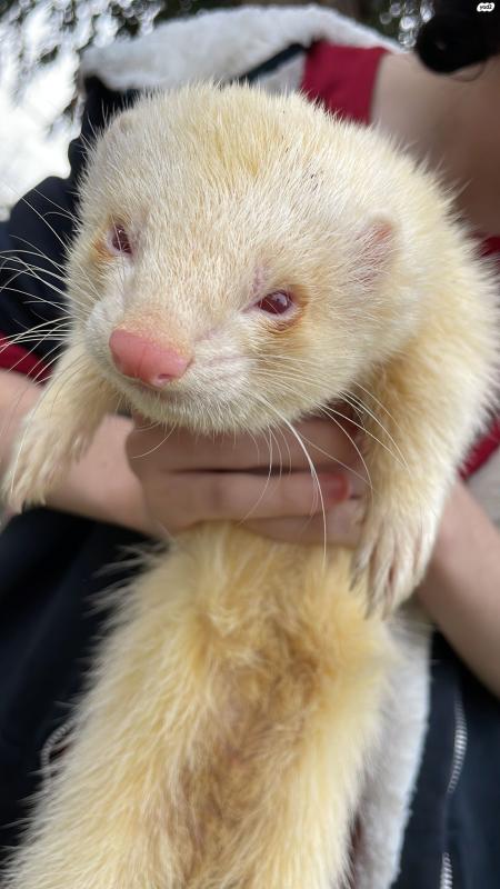 חמוס לבן בן כשנה, מאוד חברותי ומורגל