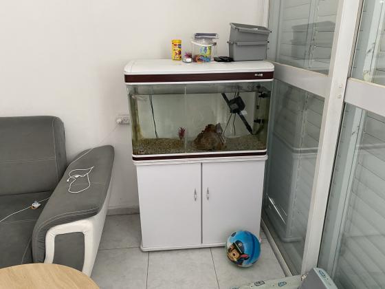 למכירה אקווריום עם הציוד הכולל פילטר מד חום חצץ ועוד, וארון נקנה לפני כשנתיים, נמכר עקב אי שימוש וחוסר זמן טיפול