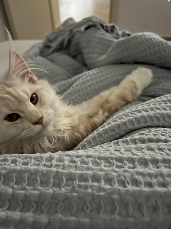 גור מיין קון מהמם להפליא בן 3.5 חודשים. מחוסן , סוף החודש אמור לעבור חיסון נוסף. רגיש ברמות, רגוע ואוהב לשחק. צבעו לבן עם כתמי בז?