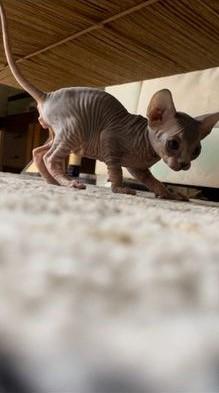 גור ספינקס גזעי בן חודשיים, המלטה מהורים בריאים, צבע מיוחד, עיניים ירוקות, חברותי מאוד. יימסר בסיום גמילה מיניקה בגיל 3 חודשים. יימכר רק למכירי הגזע. המחיר כולל חיסון ותילוע.