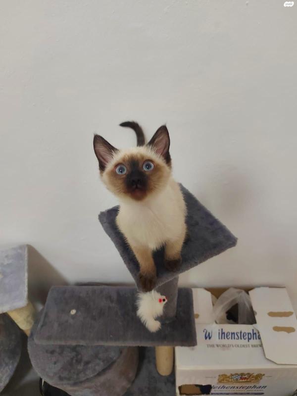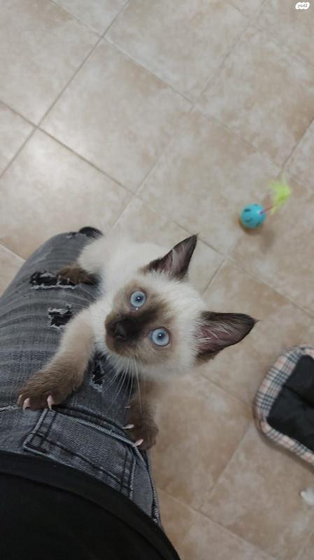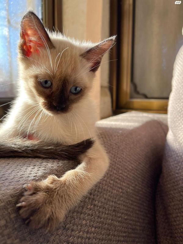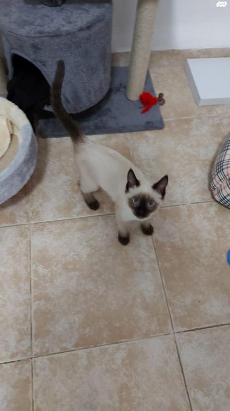 חתול סיאמי בן 3 חודשים. גזעי ואצילי. הוא מאוד יפה פרווה לבקנית למחצה, לבנה בכל הגוף, למעט בזנב ובפנים, עיניים כחולות כמו יהלום.הוא בן לזוג חתולים סיאמים שהגיעו מבתי גידול הכי טובים בארץ. הוא מתנהג ממש טוב. חתול מאוד נקי ביחס לגזעי חתולים אחרים.חתולים סיאמים אוהבים תשומת לב,. גזע חכם מאוד שזקוק תמיד לעניין..החתול יימסר רק למי שישמור עליו