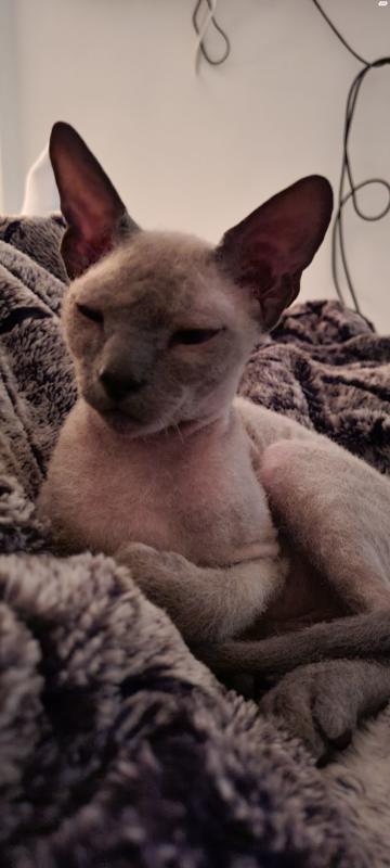 ספינקס מעורב מקסים בצבע אפור לבן בן פחות משנה ,חתול יפה , אוהב לשחק אוהב ליטופים והתקרבל בשמיכהלא מסורס