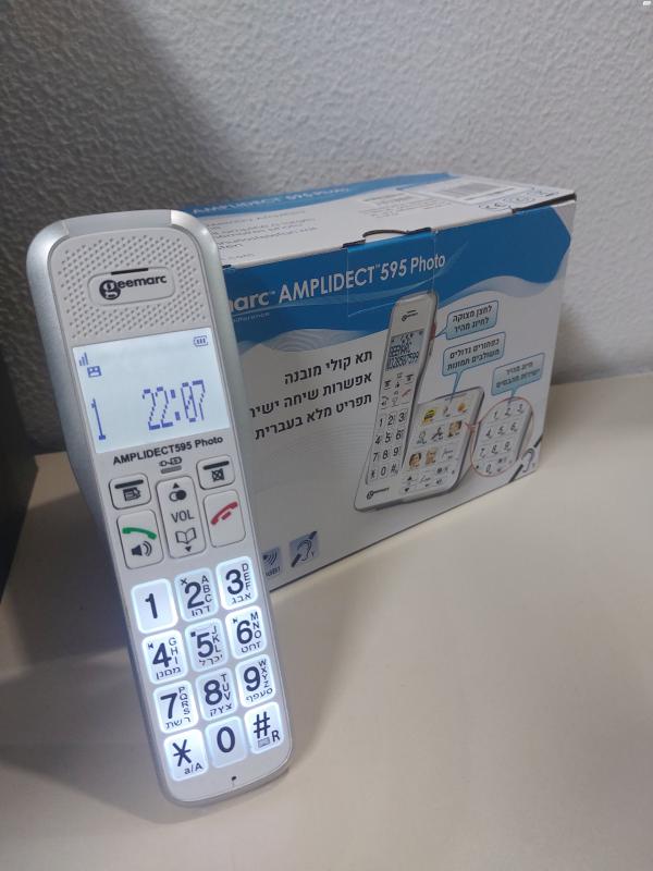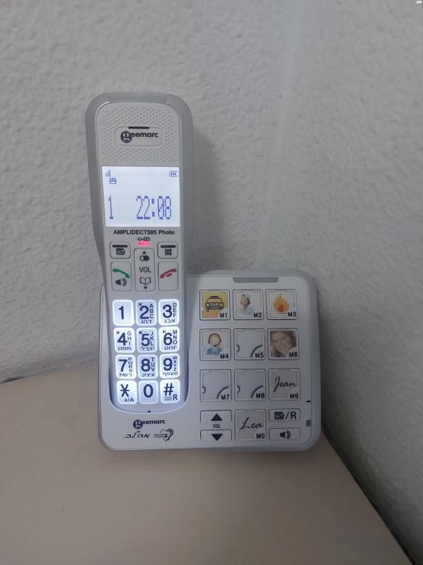טלפון נייח מותאם למבוגרים מדגם Geemarc AMPLIDECT 595 PHOTO.טלפון ברמה גבוהה קל מאוד לשימוש ממשק בסיסי ופשוט להבנה למבוגרים.הטלפון מכיל לחצן מצוקה לחיוג מהיר בעת הצורך SOS,כפתורים גדולים משולבים תמונות לחיוג מהיר וקליל+ חיוג ישירות מבסיס ההטענה .עוצמת השמע של המכשיר גבוהה מאוד וחדה.הטלפון במצב חדש מואר ובעת לחיצה על מקש המספרים מקריא לך בקול את הספרה שנלחצה.הטלפון אידיאלי למבוגרים! טלפון נייח מותאם למבוגרים
