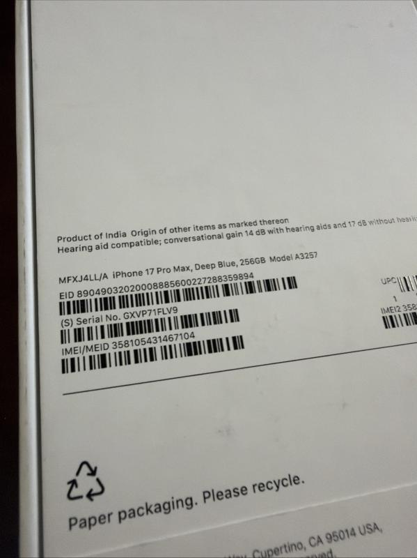 Apple iPhone 17 Pro Max - 256 GB מקורי חדש לגמרי, מגיע עם אריזה מלאה עם כל האביזרים ואחריות בינלאומית לשנהדוא"ל: shemikatirrellehx57@gmail.com