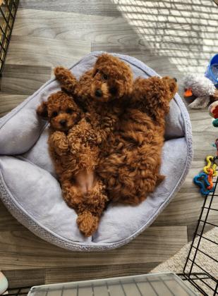 פודלים חמודים בצבע חום. הם מעודכנים בכל החיסונים, תולעים ובריאות מובטחת. פשוט חמודים קטנים! ילד וילדה מתוקים מאוד.