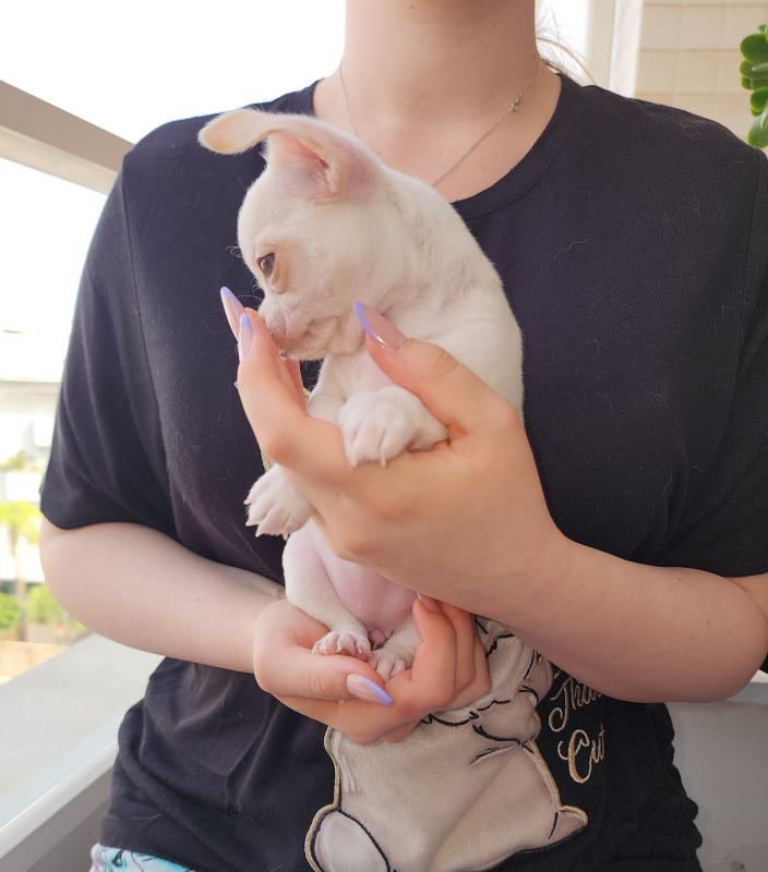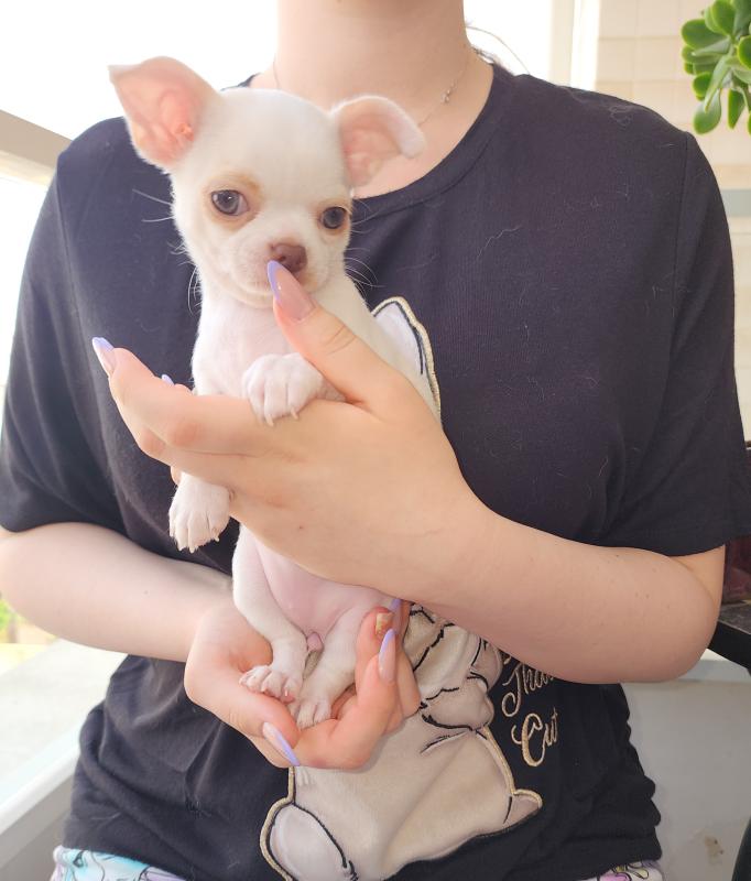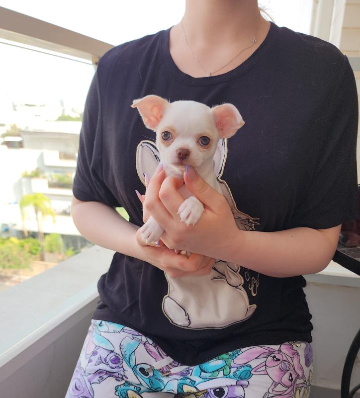 גורה צ'וואווה ננסי שיער קצר צבע לבן קרם , ראש תפוח. בת חודשיים לאחר בדיקה וטרינרית קיבלה חיסון משושה ראשון וטיפול מונע נגד תולעים עם פנקס חיסונים מסודר ט 0547559255