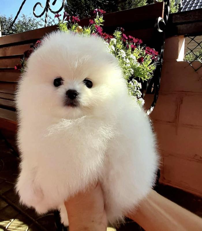 גורים פומרניין טדי בר הקטנים ביותר צבע לבן. כולל חיסונים.