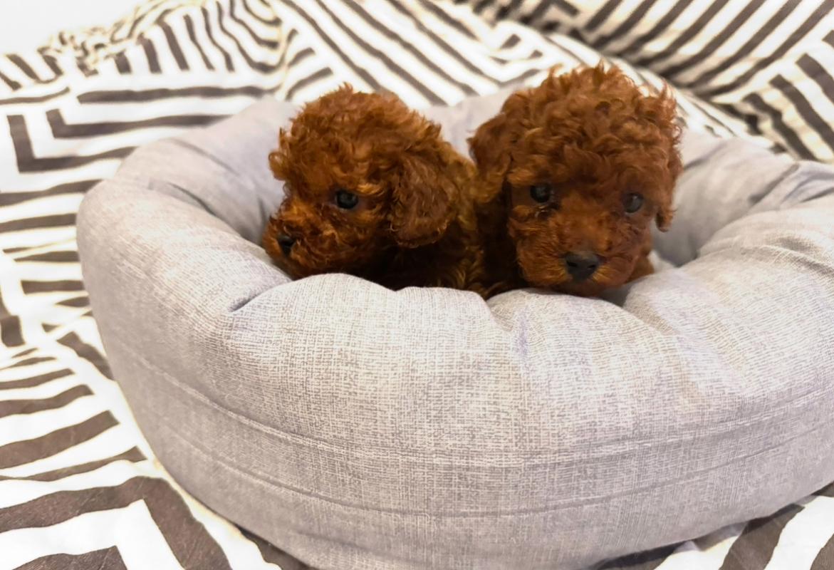 גורי פודל טוי בצבע אדום