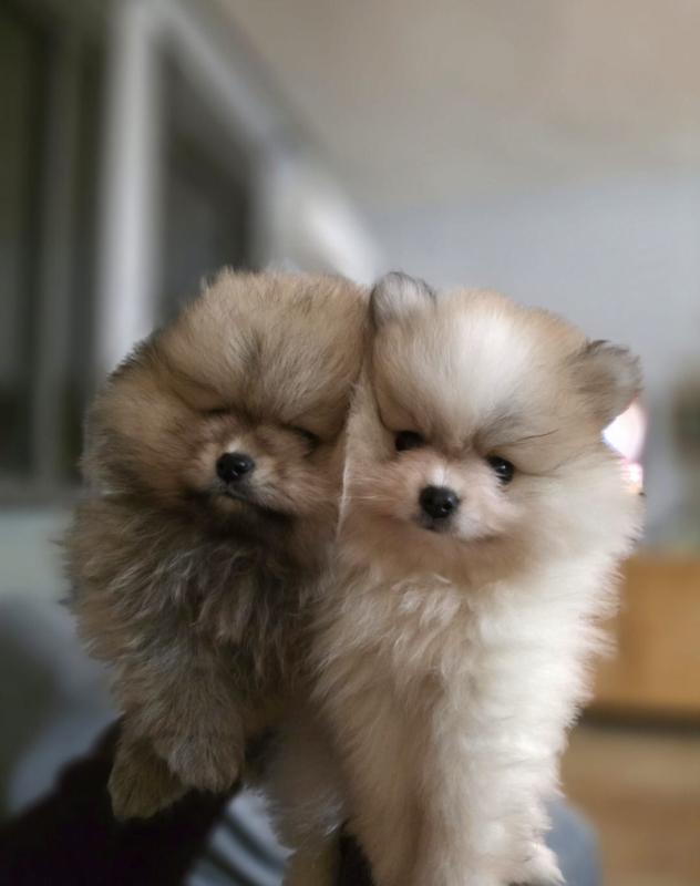 גורי פומרניאן בני שלושה חודשים זכר (חום) ונקבה (לבנה) עם פנקס חיסונים אחרי 3 חיסוני משושה ותילועהורים גזעייםאין חמודים כאלה
