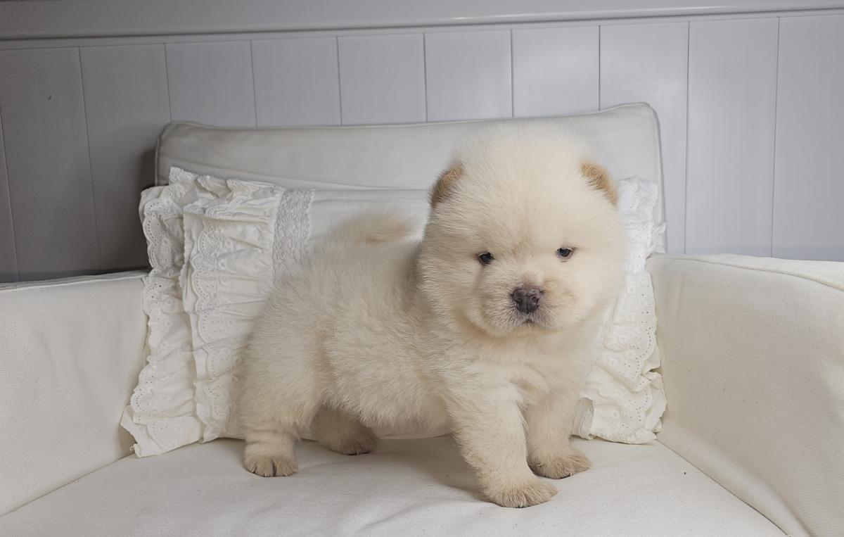 גורי צאו צאו בצבע לבן בני חודשיים מהסוג הננסי לשון בצבע סגול