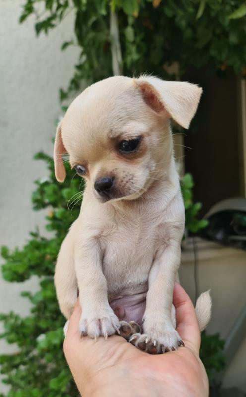גורי צ'יוואווה מוכנים לבית חדש. הגורים בני חודשיים וחצי. צבעים בז'. קצר שיער. 0507605917