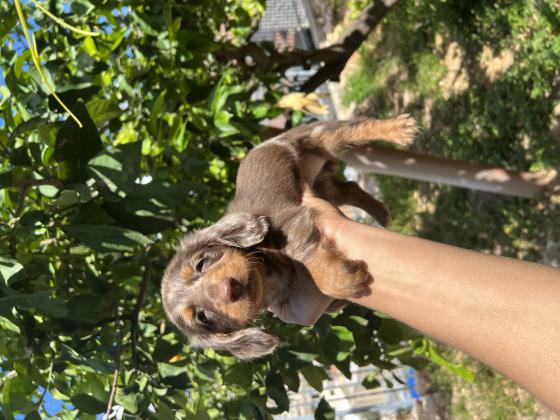 גורת צחש שיער ארוך צבע מריל שוקולד !!כלבה נדירה רק למביני עניין