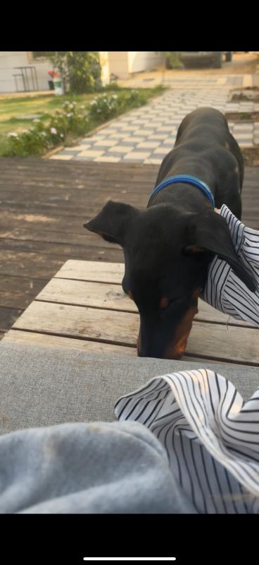 גור דוברמן בן 6 חודשים (עם גזירת זנב ללא גזירת אוזניים) עבר כל החיסונים אבא מהגזע האירופאי ואמא מהגזע האמריקאי תמיד מוכן לשחק ולרוץ , ולשמור! חכם מאוד וקולט מילים מהר , יש לו תנועה מהירה, יש לו תיאבון טוב, בריא , חזק , חמוד ומוכן לבית אהוב שיתן לו זמן ומקום לשחק בשמחה !